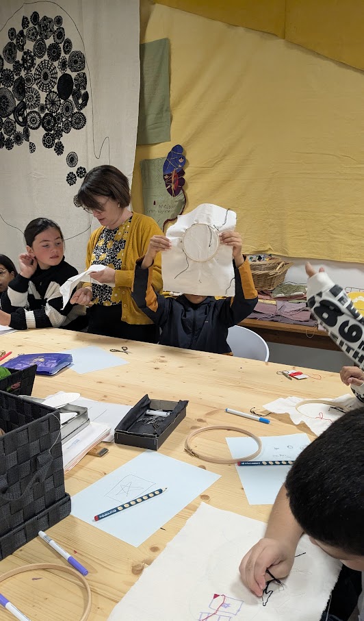 "ART TEXTILE" Les 6°2 rencontrent l'artiste Christine Masduraud dans son atelier ! (Pratique de la broderie).