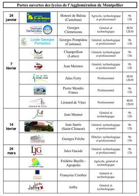Liste des journées Portes ouvertes des lycées de l'agglomération de Montpellier