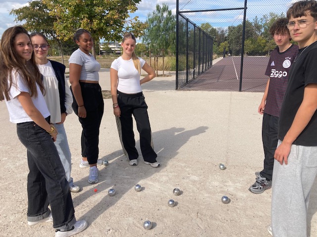 Le jeudi 9 octobre 2025 s’est déroulée la journée d’intégration de la 2nde OC, pour moitié occitaniste et pour moitié euro-espagnol, au parc Montcalm, histoire de faire connaissance dans une ambiance fédératrice. Au programme pique-nique et tournoi de pétanque. Chaque triplette portait le nom d’une ville occitane, entre Alpes, Jura et Pyrénées, Méditerranée et océan atlantique … C’est Carcassonne qui a triomphé de Limoges en finale! La sortie s’est très bien déroulée et a renforcé la cohésion du groupe. Les enseignants accompagnateurs étaient les deux professeures principales de la classe, Mme Michaleck, professeure de mathématiques et Mme Fraisse, professeure d’occitan, M. Labedan, professeur de SES en espagnol et d’EMC en occitan, et M. Bonnet, professeur de mathématiques actuellement en licence d’occitan grâce à la bourse « Ensenhar/ Enseigner » délivrée par l’OPLO (office public pour la langue occitane) qui a passé la semaine « en observation (et pas que!) dans l’établissement.