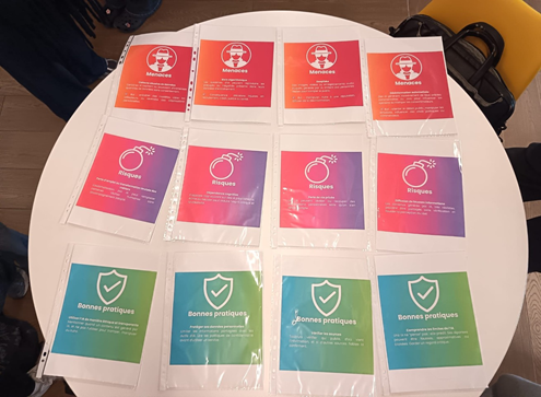 Les élèves ont exploré les différents métiers de la cybersécurité à travers un jeu de cartes animé par l’association La Mêlée. L’objectif était d’associer des cartes représentant des menaces, des risques et des moyens de prévention.