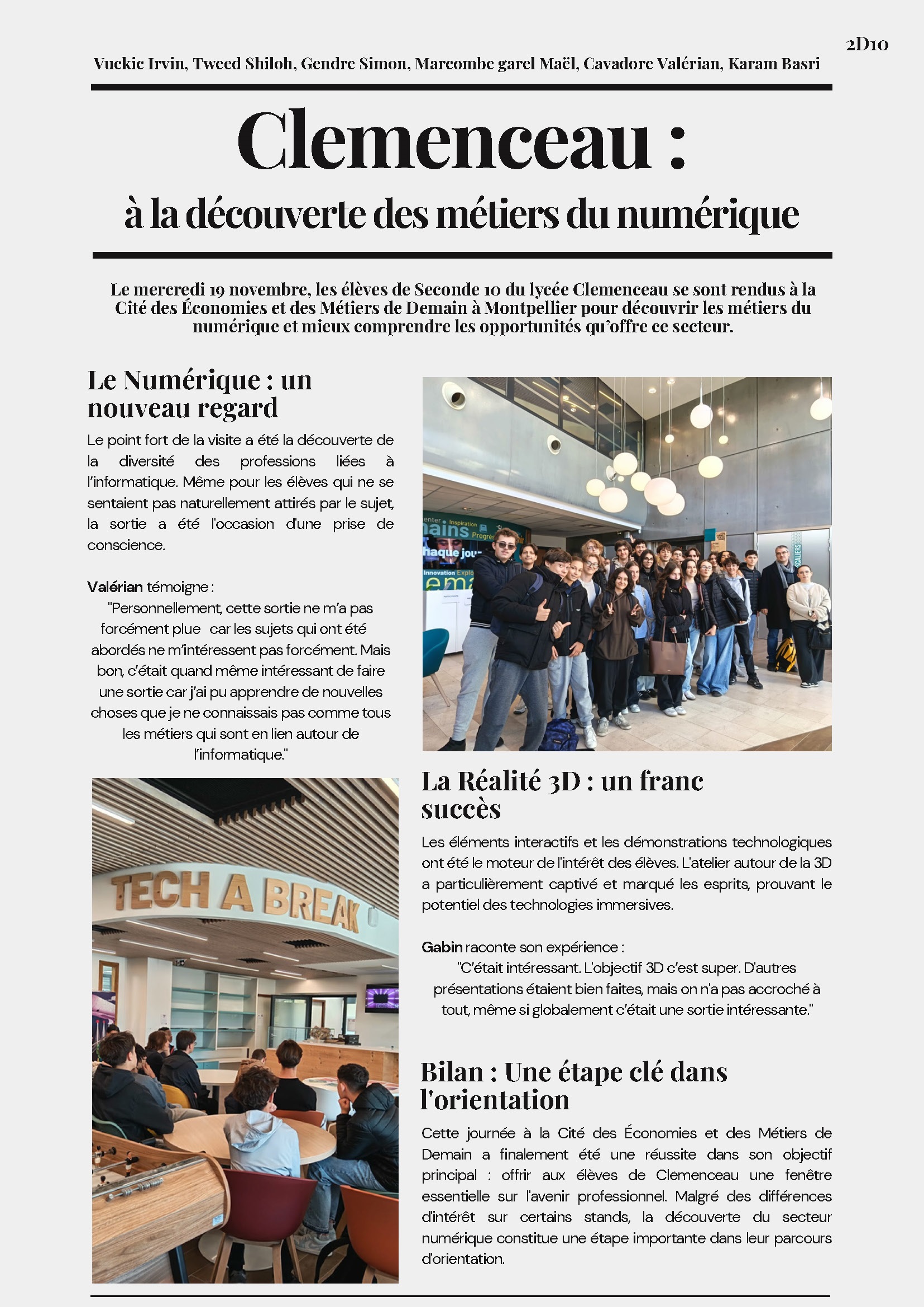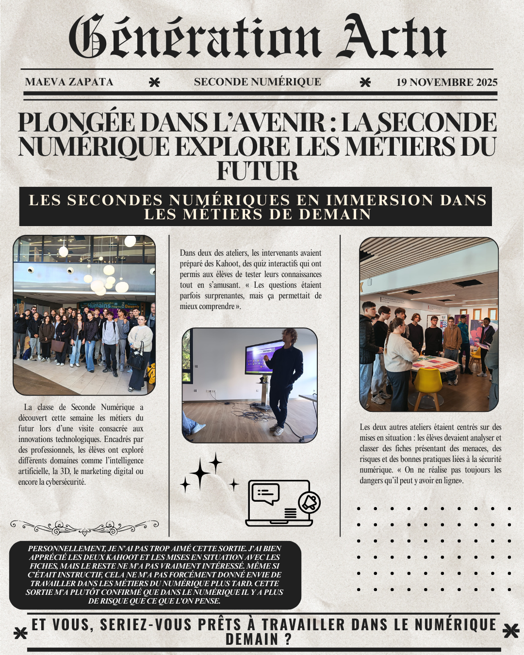 Pour cette édition du 19 novembre 2025 , les élèves de du lycée Clemenceau ont eu l’opportunité de participer à des ateliers interactifs, des rencontres avec des experts et des activités ludiques pour mieux appréhender les enjeux et les opportunités du numérique.