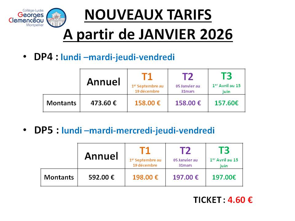 TARIF TICKET (4.60 € le repas)