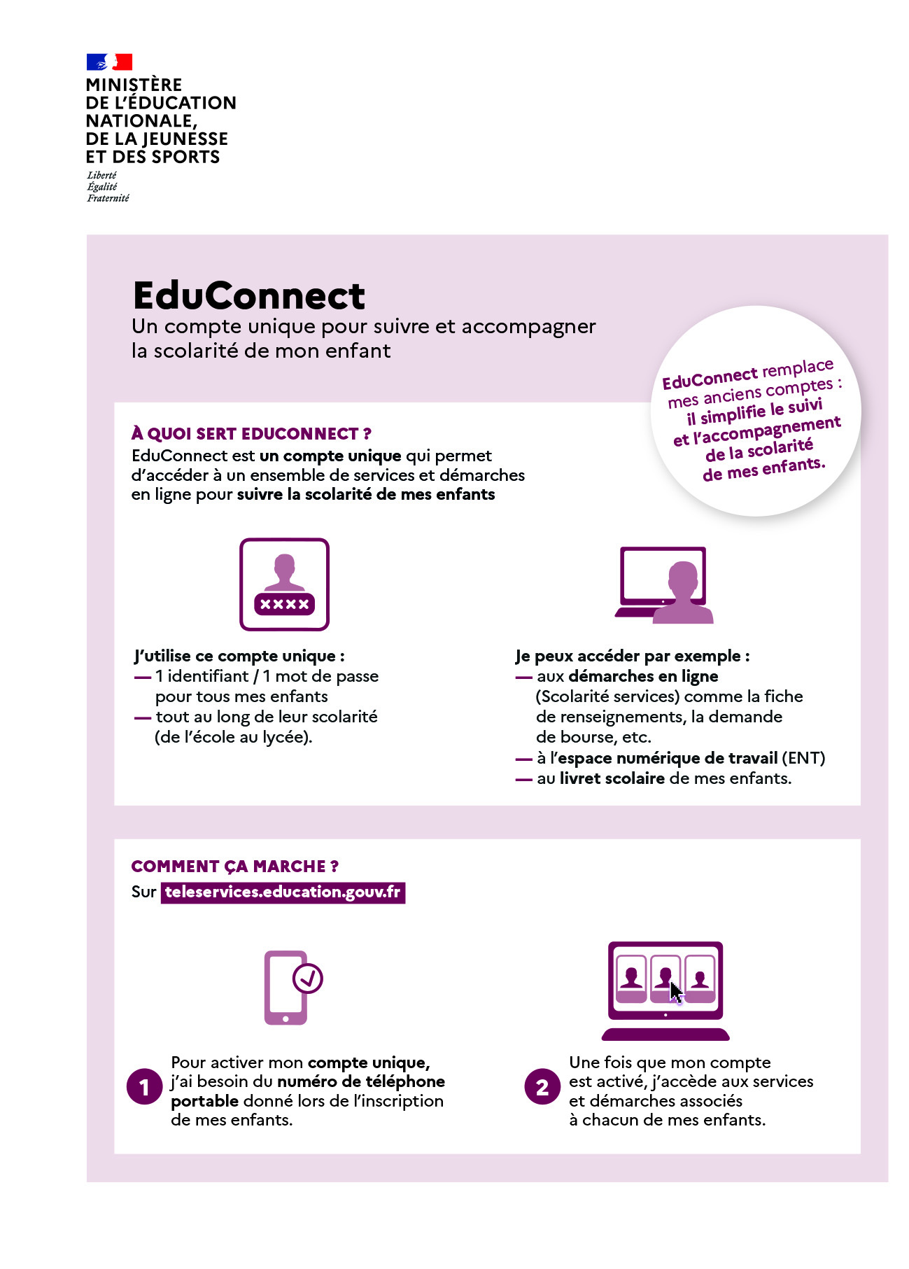 Veuillez créer votre compte EDUCONNECT pour accéder aux paiements des factures !